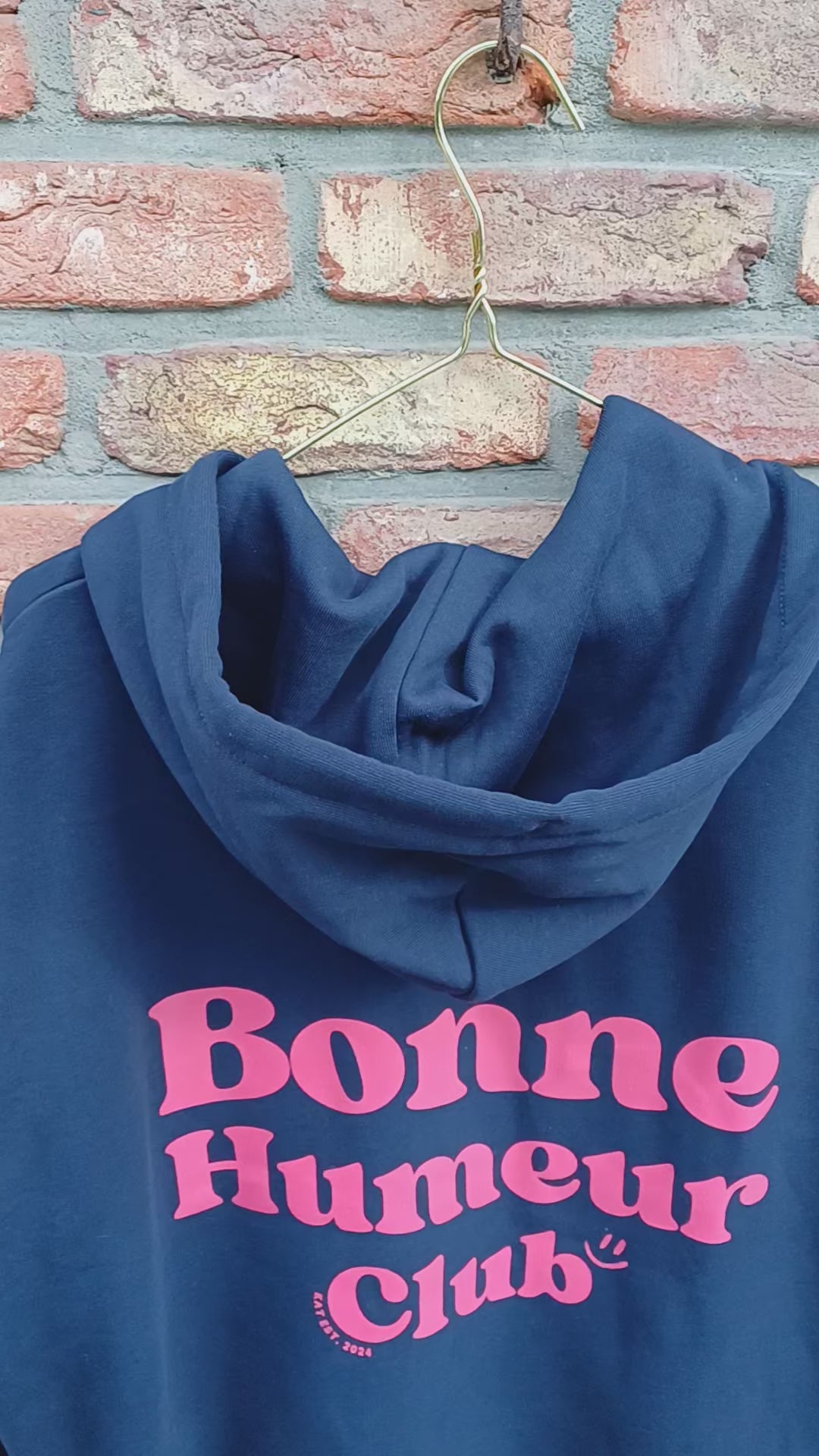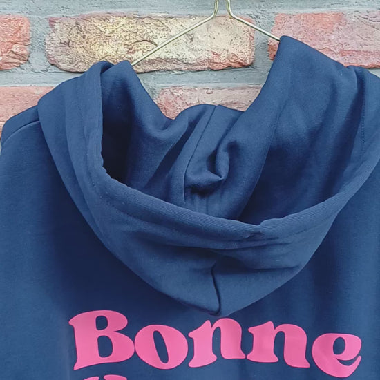 Featering a zipper, it's perfect for layering up or chilling out. inside super soft and made from 100% organic cotton - just the way we like it. The back is printed with 'BONNE HUMMEUR CLUB' for instant happy vibes.