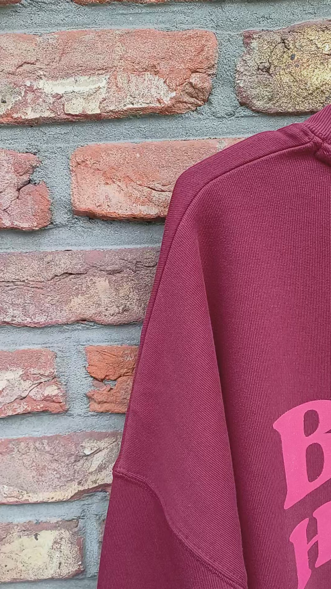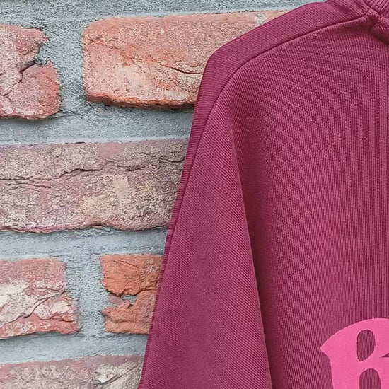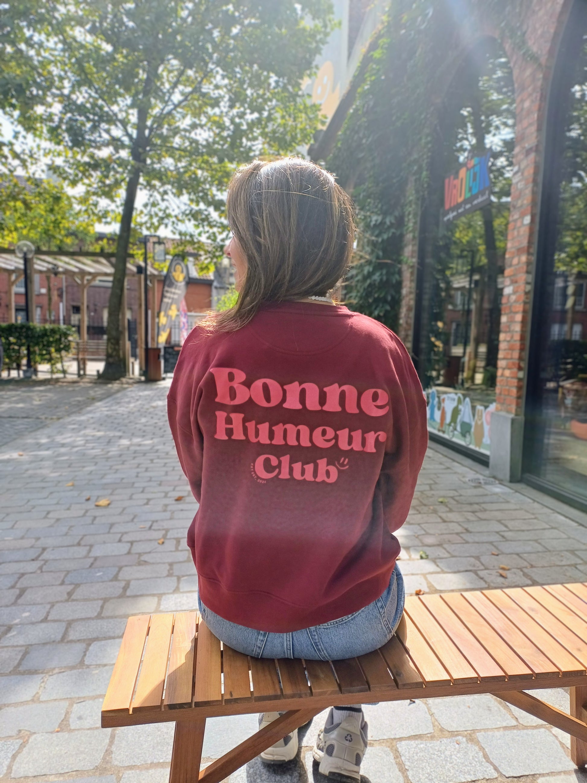 This burgundy sweater features a cheerful "bonne humeur" print on the back. It fits true to size, but if you're unsure, we recommend choosing one size up for extra comfort and a relaxed vibe. Perfect for spreading good mood wherever you go!
